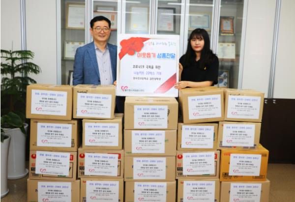동두천시자원봉사센터(이사장 최용덕)에서는 코로나19로 인한 저소득층 지원을 위해 나만의 이웃사랑 나눔키트(선물상자) 전달 범시민 자원봉사운동을 전개하고 있는 가운데, 지난 4일 동두천고등학교 2학년에 재학 중인 김민성 학생이 나눔키트 20박스(60만원 상당)를 직접 만들어 자원봉사센터로 기증했다고 밝혔다.
