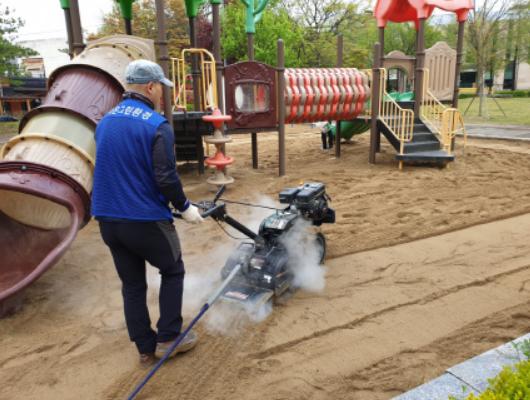 완산구는 따뜻해지는 날씨와 코로나19 확진자 감소 추세에 따라 공원 내 모래 놀이터를 이용하는 아이들이 많아질 것으로 예상하여 중산공원, 강변공원, 도내기샘공원 등 44개소의 모래 놀이터에 대해 모래 속 이물질 제거 및 모래 뒤집기·평탄화 작업을 시행하고, 고압 스팀 살균 소독을 실시하였다.