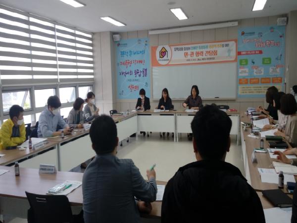 제주시는 `20. 5. 6.(수) 제주시 장애인 지역사회 통합돌봄 지원센터회의실에서 지역사회 중심의 장애인 통합돌봄 선도사업 성공적 추진을 위한 종합사회복지관 및 장애인종합복지관(이하 “종합복지관”) 9개 기관이 참석한 가운데 간담회를 개최하였다.