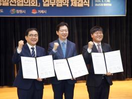 창원시(시장 허성무)는 7일 진해만권 중심 도시인 창원시와 거제시를 하나로 하는 「진해만권 통합관광벨트 구축을 위한 업무협약」을 체결하고 지자체별 개별사업으로 추진 중인 관광산업을 경남도와 지자체간 협업을 통한 체계적인 관광종합계획 수립과 사회기반시설 연계 확충으로 지역경제 활성화에 힘을 모으기로 했다.