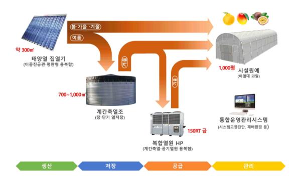 사업대상지는 포항시 흥해읍 소재 아열대과일 체험농장으로 한라봉과 애플망고 재배에 적용할 예정이다. 컨소시엄 주관기관은 한국에너지 기술연구원이 맡고 경북도에서는 농업기술원과 태양열 전문기업인 세 한에너지(주)가 참여하고, 대전대학교와 ㈜에스앤지에너지 등이 협력 기관으로 참여한다.