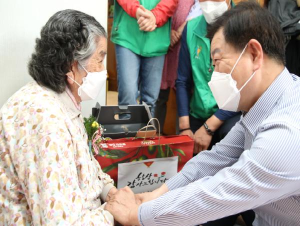 하안4동 지역사회보장협의체는 독거 어르신 5명에게 건강홍삼세트(50만원)을 전달하고 카네이션을 달아드리며 부모님의 은혜에 감사함을 전했다.
