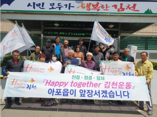 이정하 아포읍장은 “그간 각 단체에서 Happy together 김천운동에 적극 동참하여 주신데 대하여 감사드리며, 계속적으로 Happy together 김천운동 실천방안을 모색하고 추진하여 시민모두가 행복한 김천을 만들어가자”라고 하였다.
