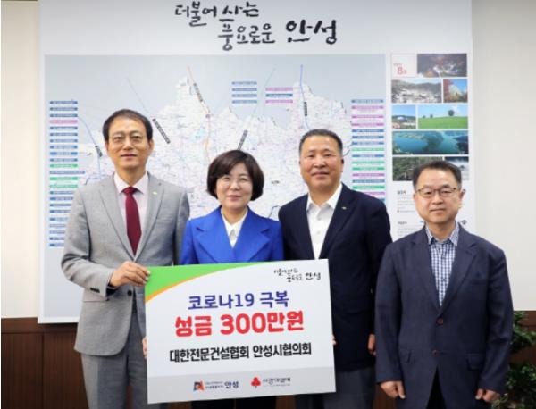 대한전문건설협회 안성시협의회에서 11일, 코로나19로 어려움을 겪고 있는 취약계층을 위해 써달라며 성금 300만 원을 안성시에 기탁했다.