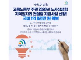 대전 대덕구(구청장 박정현)가 고용노동부 산하 노사발전재단이 공모한 ‘2020년 노사상생형 지역일자리 컨설팅지원 사업’에 전국 자치구 최초로 선정돼 국비 1억8천만 원을 확보했다.