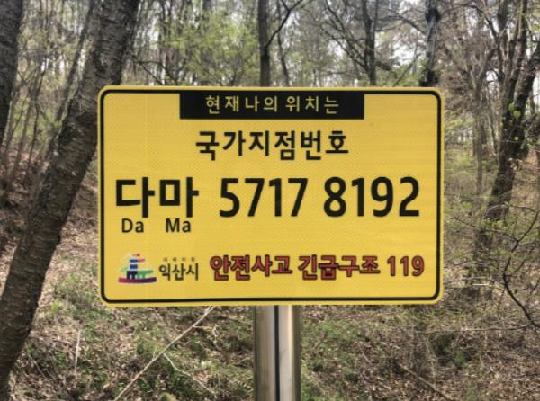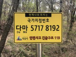 이에 따라 익산시는 주말은 물론 평일에도 많은 사람들이 자주 찾고 있는 탑천자전거도로와미륵산등산로에 국가지점번호판 40점을 추가 설치 했다.
