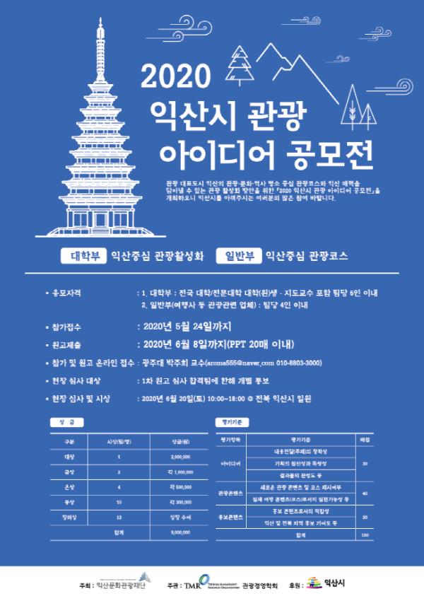 공모전은 대학부와 일반부로 나누어 진행한다. 대학부는 전국 대학교 및 전문대학 대학(원)생을 대상으로 익산중심 관광활성화 방안에 대해 제안을 받으며 일반부는 여행사 등 관광관련 업체를 대상으로 관광객을 위한 관광코스를 주제로 접수 받고 있다.