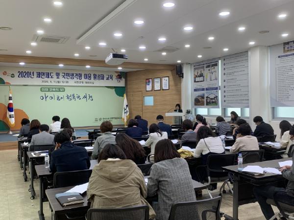 이번 교육은 2020년 제안제도 및 국민생각함 운영 계획, 국민신문고 시스템 사용 방법 및 그밖에 제도를 담당하는 군 혁신분권팀에서 이뤄지는 중점 추진사항 등에 대한 설명 순으로 진행됐다.