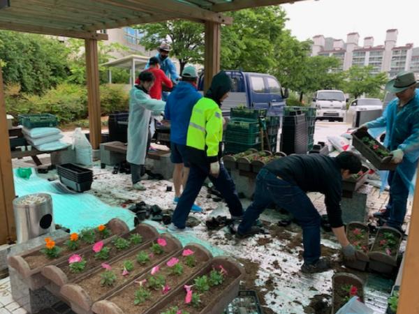 지난 9일, 비가 오는 궂은 날씨에도 불구하고 선도동 행정복지센터 직원과 청년회 회원들은 ‘아름다운 선도동 만들기’의 일환으로 신라고등학교 앞 교량 및 충효생태하천 산책로에 비올라 및 웨이브 페튜니아 등의 꽃을 식재했다. 길었던 겨울을 견뎌내고 봄에 꽃눈을 터뜨리듯 코로나19로 위축된 지역 분위기 또한 꽃을 통해 되살아 날 것으로 기대된다.