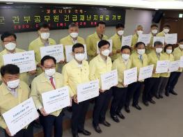 인천시 옹진군은 12일 오전 군청 중회의실에서 장정민 옹진군수를 비롯한 5급 이상 간부공무원이 코로나19 극복을 위한 ‘긴급재난지원금 기부 서약식’을 갖고 지원금 기부에 동참했다고 밝혔다.