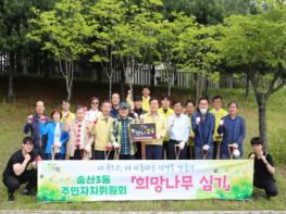 이날 행사에 주민자치위원 20명이 참여하여 송산3동 공공복합청사 신축 부지 인근 녹지에 적단풍 10주, 이팝나무 10주 등 총 20주를 직접 구매하여 식재한 후, 개인 표찰을 부착했다.