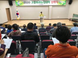 고흥군(송귀근 군수)은 지난 12일 농업기술센터 대교육장에서 농업인대학 입학생 106명이 참석한 가운데 고흥미래농업대학 13기 입학식을 가졌다.