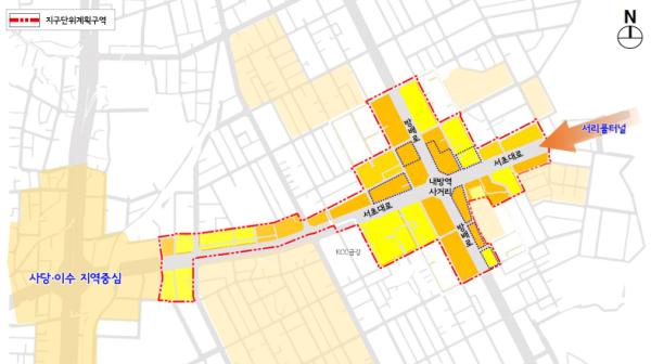 이 지역은 용적률을 최대 400%까지 적용될 수 있어 건물을 70m까지 지을 수 있고, 영화관, 소규모 공연장, 쇼핑몰, 대형마트 등 문화시설과 생활편의시설이 들어서고, 공공용지의 기부채납으로 주차장, 어린이집 등 다양한 공공 기반시설도 조성할 수 있다. 이밖에도 서초대로와 방배로 주변의 업무?문화?집회시설에 대한 건축물 면적 제한도 완화시킬 수 있는 내용이 담겨져 있다.