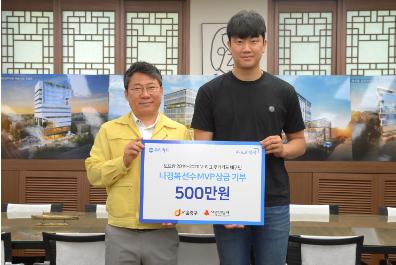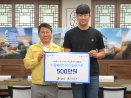 중구(구청장 서양호)가 13일(수) 오후 5시 중구청 3층 구청장실에서 우리카드 위비 배구단 소속 나경복 선수의 후원금 500만원을 전달받았다.