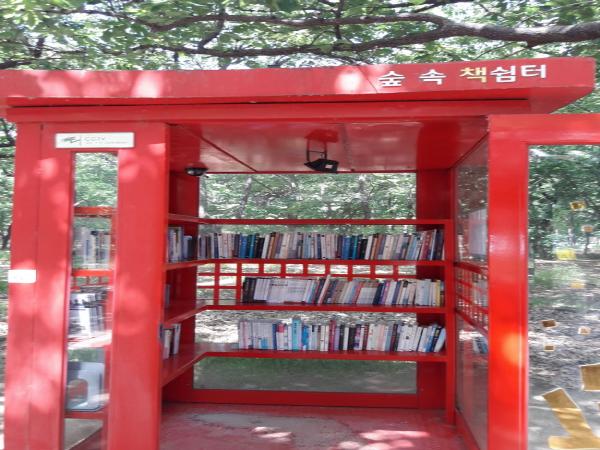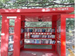 숲 속 책 쉼터는 황성공원 내 정자를 활용한 공중전화부스 형태의 시민 자율형 무인도서관으로, 시민들이 자율적으로 도서와 잡지 등을 스스로 열람하고 반납하는 방식으로 운영되며 10월까지 시민 누구나 상시 열람 가능하다.