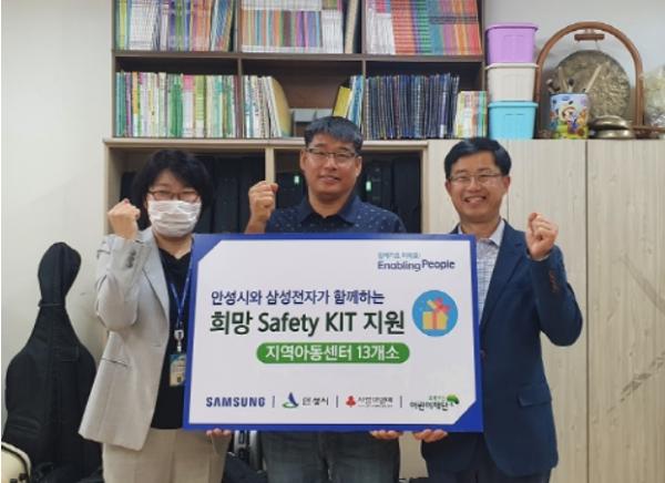 삼성전자 DS부문은 14일, 안성시 관내 지역아동센터연합회에 비접촉식 체온계 등으로 구성된 1000만원 상당의 희망 Safety KIT를 전달했다.