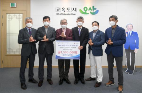 오산중27(고26)회(회장 김영길)는 14일 코로나19 취약계층 지원을 위해 성금 150만원을 오산시에 기탁했다.