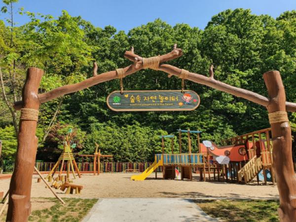 숲속 자연놀이터는 어린이들이 숲속에서 마음 놓고 뛰어놀 수 있는 자연놀이터로 정서함양에 도움이 되며, 인근 목재체험장과 유아숲체험원을 연계해 목공체험과 숲교육, 숲놀이 등을 한 번에 즐길 수 있는 장점이 있다.