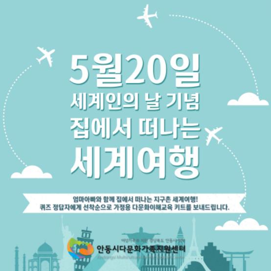 경상북도 안동시다문화가족지원센터(센터장 남정홍)는 오는 20일 세계인의 날을 맞아‘다문화이해교육 꾸러미’를 제작해 배포한다.