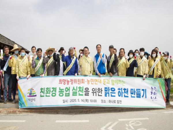 익산시는 희망농정위원회 등 농정거버넌스와 함께 코로나19로 경직된 분위기를 탈피하여 코로나19를 극복하고 농업인들이 스스로 마음가짐을 다지기 위하여 지난 14일에 탑천에서 코로나19 극복 성금 기탁 및 하천 정화 활동을 추진하였다고 밝혔다.