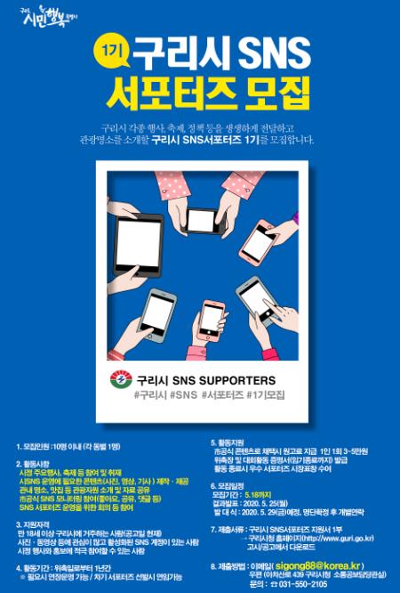 구리시(시장 안승남)는 오는 18일까지 시민에게 유익한 정보와 행복 메시지로 구리시의 희망찬 미래를 열어갈 SNS서포터즈를 모집한다.