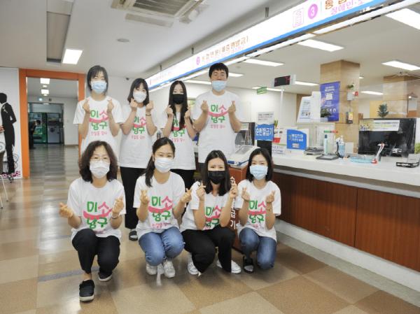 대구광역시 남구청(구청장 조재구)에서는 지난 13일 코로나로 인해 침체된 사회 분위기를 미소친절로 극복하자는 노력의 일환으로 미소친절 T(티셔츠)-day를 실시했다.