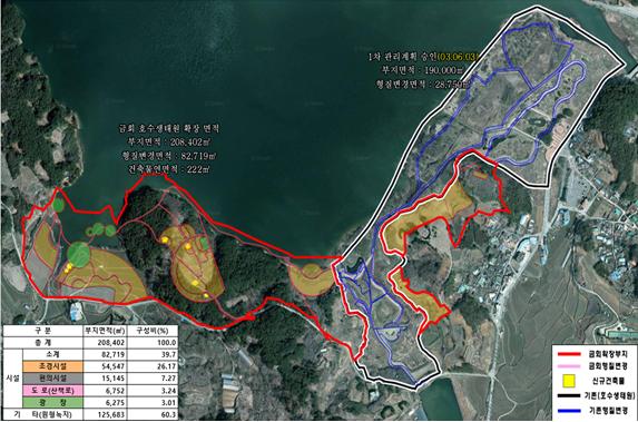 기 조성된 광주호 호수생태원 1단계 사업지는 19만㎡에 조경시설(잔디과장, 채원), 편의시설(주차장, 전망대), 산책로 모임광장 등이 조성됐다. 2010년 추정 이용객이 6만2000명이었지만, 실제 이용객이 25만4000명으로 4.1배 증가하고, 2019년말 기준 이용객이 35만3000명으로 5.7배 증가함에 따라 광주시는 2단계 사업 확장을 검토했다.