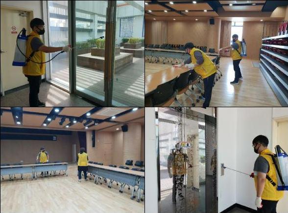 연제구 거제3동(동장 정흥구)은 지난 14일 코로나19에 대비하기 위해 주민자치회 발대식 예정 장소인 5층 대강당을 포함한 민원실, 승강기 등 동 행정복지센터 전체에 대한 방역 활동을 실시했다.