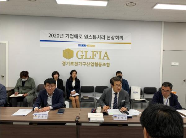 경기도가 ‘기업애로 원스톱처리 현장회의’를 15일 포천시 군내면 소재 용정일반산업단지에 위치한 가구공동 전시·판매장 ‘마홀앤’에서 갖고, 포천지역 가구 기업들의 경영애로 해소를 위한 현장행보에 나섰다.