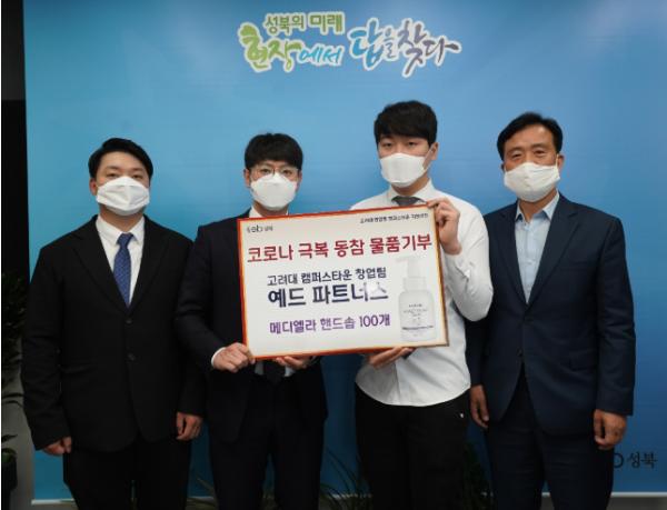 성북구(구청장 이승로)는 고려대 캠퍼스타운 창업기업인 ‘예드 파트너스’가 직접 개발한 손세정제(핸드워시) 100개를 기부해왔다고 밝혔다.