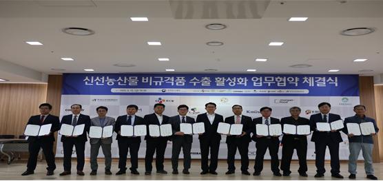 농림축산식품부(장관 김현수, 이하 농식품부)는 2020년 5월 15일 농산물 비규격품을 원료로 한 가공식품 수출을 촉진하기 위해 한국농수산식품유통공사(aT)·4개 품목 생산자 대표 수출회사(코파(KOPA, 파프리카), 케이베리(K-berry, 딸기), 케이그레이프(K-grape, 포도), 케이머쉬(K-mush, 버섯))·가공 및 해외 진출 프랜차이즈 업체 등 11개사가 참여하는 다자간 업무협약을 체결하였다.