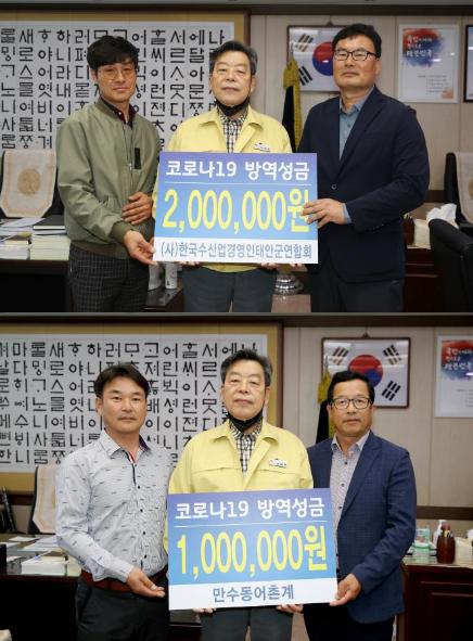같은 날, 고남면 만수동 어촌계(어촌계장 전제능)도 코로나19 방역 성금 100만 원을 군에 기탁했다.