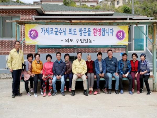 가세로 군수는 “현재 외도에는 11억 2천여만 원의 국비가 투입돼 선착장 보강공사 및 방파제 시설 사업이 진행되고 있다”며 “해당 사업이 잘 마무리 될 수 있도록 힘쓰고, 주민들께서 요구하신 다양한 건의 사항에 대해서는 빠른 시일 안에 해결될 수 있도록 적극 검토하겠다”고 말했다.