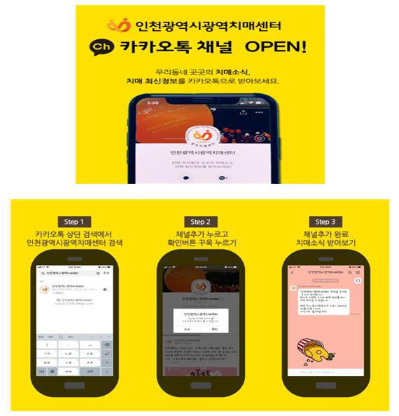 또한 걷기행사, 치매극복의 날, 치매교육 등 행사 진행 시 카카오톡 메시지를 통해 정보를 제공한다. 채널 이용방법은 카카오톡 상단 검색창에‘인천광역시광역치매센터’를 검색하고 채널을 추가하면 된다.