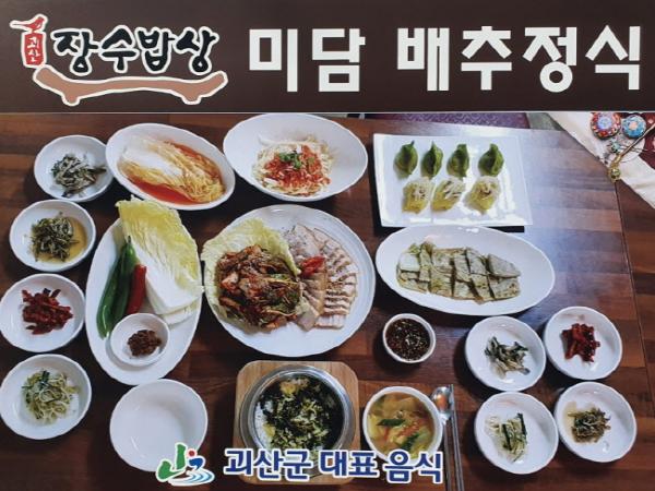 특히 배추정식은 괴산의 대표 특산품인 배추와 건강한 식재료를 결합해 만든 장수밥상으로, 귀한 손님에게만 대접했던 보쌈김치를 돼지고기수육과 함께 배추메밀전, 배추만두, 배추우거지 솥밥 등 다양한 배추 요리로 이뤄진 메뉴다.