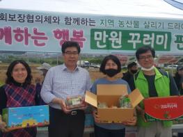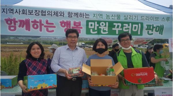 밀양시지역사회보장협의체(민간위원장 손성근)가 코로나19에 따른 사회적 거리두기, 개학 연기 등으로 판로에 어려움을 겪고 있는 지역농가를 돕기 위해 5월 16일 위양지 방면 도로변에서 지역농산물 살리기 드라이브 스루 마켓을 운영했다.