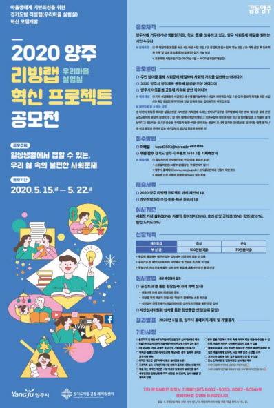 양주시(시장 이성호)는 오는 22일까지 ‘2020 양주 리빙랩(우리마을 실험실) 혁신프로젝트’ 과제를 공모한다.