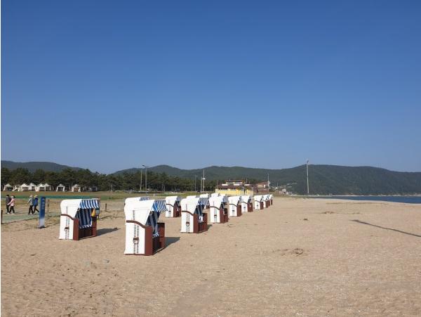해양치유산업 선도 지자체인 완도군에서는 친환경적이고 안전한 신지명사십리 해변에 ‘비치바스켓 해양기후치유존’을 조성했다.