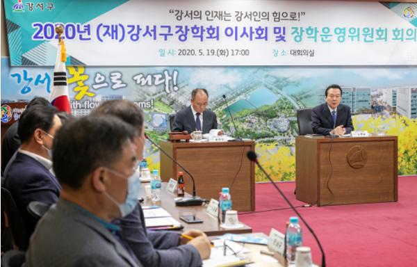 서울 강서구(구청장 노현송)는 19일(화) 오후 5시 구청 대회의실에서 노현송 구청장, 송진수 (재)강서구장학회 이사장 등 장학회 관계자 20여 명이 참석한 가운데 ‘강서구장학회 이사회’를 열었다.