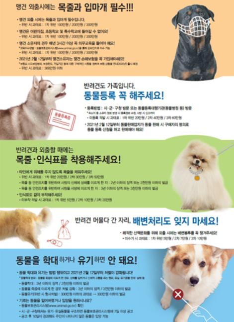 반려견 관리·안전조치 및 맹견소유자 준수사항 등을 아파트, 공원, 동물병원 등에 포스터 부착 및 현수막 게재 등을 통해 홍보했다.