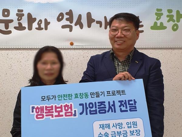 용산구 효창동주민센터(동장 이정남)가 코로나19 등 재난으로부터 취약계층을 보호하기 위해 ‘행복보험’ 가입 지원사업을 벌인다.