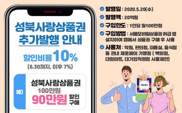 최근 코로나19의 여파로 언택트(비접촉, 비대면) 소비에 대한 시민들의 관심이 높아지고 할인혜택까지 가능하다 보니 성북사랑상품권 사용이 가능해지면서 추가 발행에 대한 요구가 지속적으로 있어 왔다.