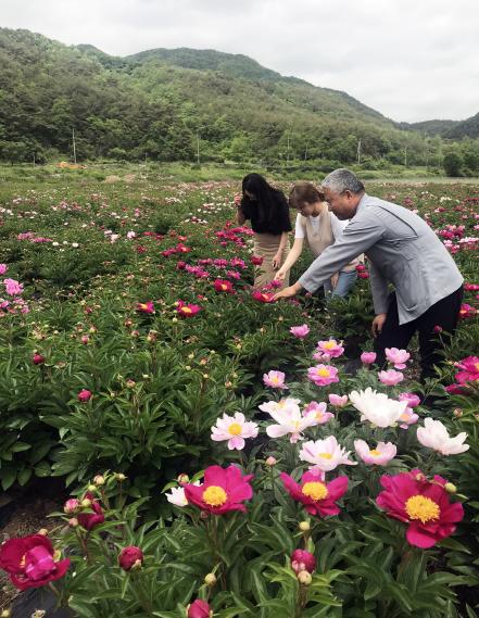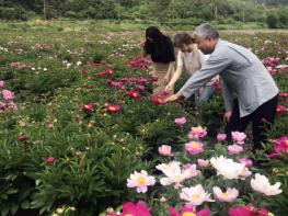 요즘 붉은 작약꽃이 들녘을 수놓고 있어, 만발한 작약꽃 따라 관광객들의 발길이 이어 지고 있다