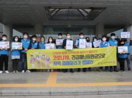 충주시청 로비에서 열린 이 날 캠페인에는 충주시 공무원노조원 20여 명이 동참한 가운데 코로나19 영향으로 어려움을 겪는 지역 내 소상공인, 영세 자영업자의 위기 극복을 위해 정부 긴급재난지원금은 지역에서 사용해 줄 것을 적극 호소했다.