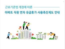 이번에 배포되는 안내서는 지난 3월 개정된 근로기준법 내용을 입주자대표회의 의결에 따라 신속히 적용하여, 관리사무소 직원들의 휴식권을 강화하는 한편 입주민의 관리비 절감에 도움을 주기 위해 만들었다.