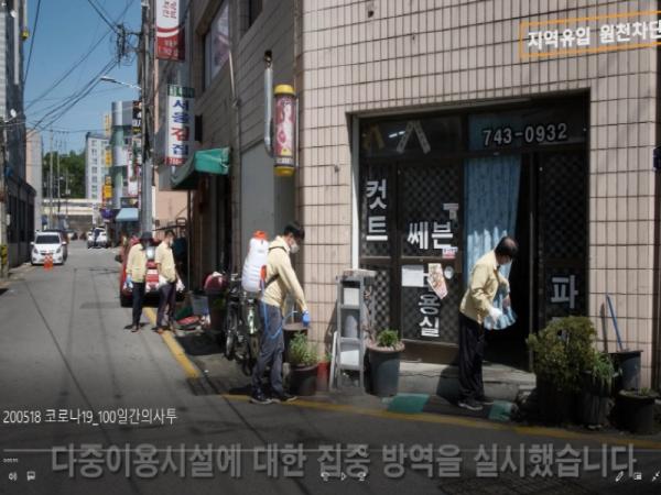 이 홍보영상은 코로나19 심각 단계 격상에 따른 △다중시설 폐쇄 △어린이집 휴원 △행사 취소 내용 뿐만 아니라, 공무원들이 △예방수칙 홍보 △발열체크 △방역 등 코로나19 일선 현장의 모습을 생생하게 담았다.