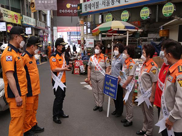 전통시장 자율소방대는 지역 110개소 전통시장에서 운영 중이다. 이들은 지난 5월 6일부터 이용객들의 감염병 확산에 대한 경각심을 높이고 자발적이고 적극적인 실천운동으로 전개하기 위해 자율순찰과 홍보 캠페인 등을 펼쳐왔다.