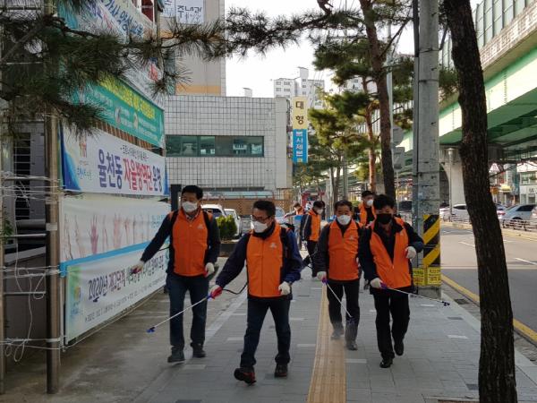 정찬해 율천동 주민자치회장을 단장으로 하는 자율방역단은 주민자치회·단체장협의회 위원 등으로 구성된다. 방역 활동을 할 때마다 8~10명이 참여한다.