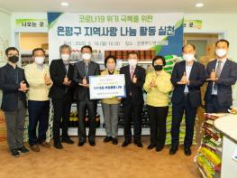 은평구(구청장 김미경)와 한국환경산업기술원(원장 유제철)은 18일 ‘은평푸드뱅크마켓’(은평구 대조동 소재)에서 코로나19 위기 극복을 위한 기부금품 전달식을 가졌다.
