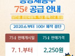 시는 올해 3월 시행규칙 개정을 통해 75리터 종량제봉투를 공공용으로 공급하였고, 5월 조례 개정을 통해 일반용 종량제봉투에도 75리터 규격을 추가하였다. 또한 6월부터는 100리터 종량제봉투 제작을 중단하고 7월부터는 마트, 편의점 등 판매소에도 100리터 종량제봉투 대신 75리터 종량제봉투를 공급할 방침이다. 단 이미 구입한 100리터 종량제봉투는 사용이 가능하다.